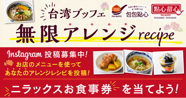 笑顔があふれる食べ放題のテーマパーク、 ニラックス株式会社(本社:東京都武蔵野市、 代表取締役:崎田 晴義)が運営する「ザブッフェ包包點心」、「ザブッフェ點心甜心」にて、「無限アレンジレシピコンテスト」を開催いたします!