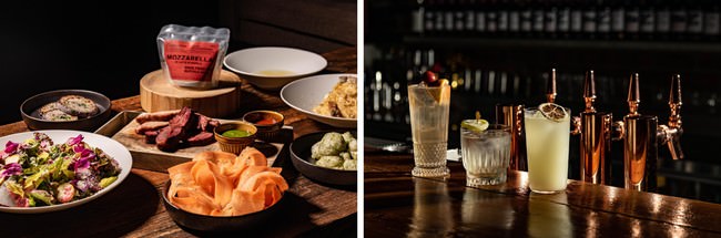 THE MUSIC BARでは、日本国内でも数少ないサーバーから注がれるタップカクテルを中心にバーテンダーが作る絶品なカクテルのほか、ワインやビールも充実。また、店名にはBistroの名を冠し、2019年秋より千葉県木更津市にオープンしたサステナブル ファーム&パーク「KURKKU FIELDS(クルックフィールズ)」から届く食材をふんだんに使った、お酒がすすむ食事メニューも提供いたします。