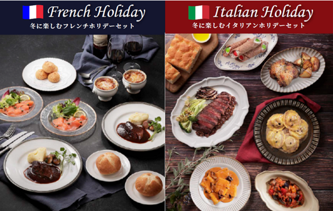第三弾となる今回のウィンターホリデーセットは”おうちでゆったり贅沢(リッチ)に世界の料理を楽しむ”というコンセプトで、イタリアンとフレンチをそれぞれセットにして詰め合わせた「冬に楽しむイタリアンホリデーセット」と「冬に楽しむフレンチホリデーセット」の2セットを数量限定で販売いたします。