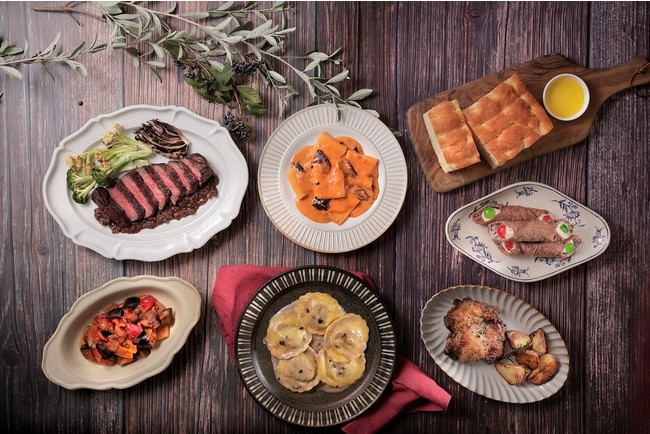 自社製オニオンケッパーソースで味わうアンガス牛肩ロースのビステッカや、人気のショートパスタ2種、カンノーリなどを詰め合わせた、シェアして楽しむイタリアンディナーセットです。湯煎や解凍するだけで、作りたての美味しさと本場の雰囲気を味わえます。