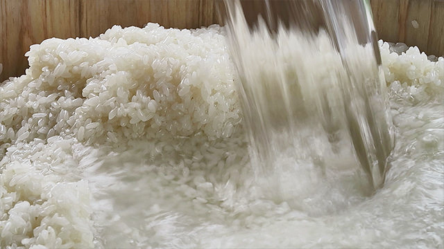 もち米に烏衣紅麹を混ぜ合わせ、でんぷんが糖化したら廖渓(リョウケイ)の水を加えます。