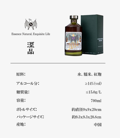 烏衣紅麹を使用し、白酒の芳しい香り、ウイスキーのスモーキーな香り、そして老酒のまろやかな味を同時に味わっていただけます。