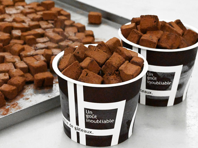 今回販売する「プレミアム生チョコアイス」に使用されているチョコレートは、オーナーパティシエの権田啓嗣氏自らが現地に出向き調達したベトナム産のチョコレートを使用。生クリームを使用した程よい甘さのチョコレートアイスの上にガナッシュをかけ、最後にダイスカットした生チョコを贅沢にトッピングしました。生チョコは大人向けのハイカカオな仕上がりになっています。生チョコの大きさも食べやすさを考慮して小さめのサイズにカット。チョコレートアイス、ガナッシュ、生チョコが一度に味わえるチョコレートづくしの商品です。