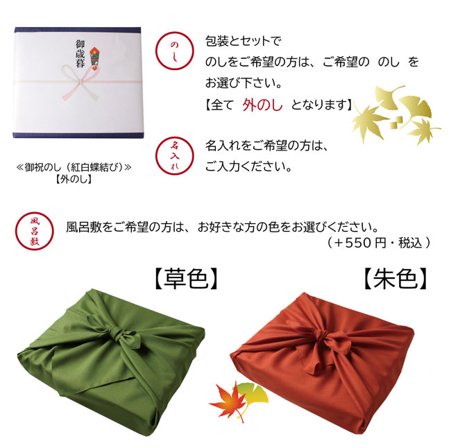 包装紙は2種類からお選びいただき、お熨斗紙もおつけできます。