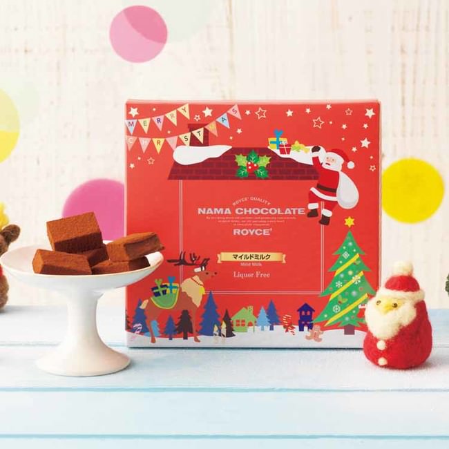 人気の生チョコレート[マイルドミルク]が可愛らしいクリスマスパッケージで登場。洋酒を一切使わず、マイルドでコクのある味わいに仕上げたミルクチョコレートに、北海道の生クリームをブレンドしました。ミルク感豊かなやさしい甘さ、後味にほんのりと広がるキャラメルのような風味をお楽しみください。