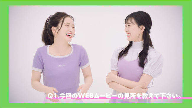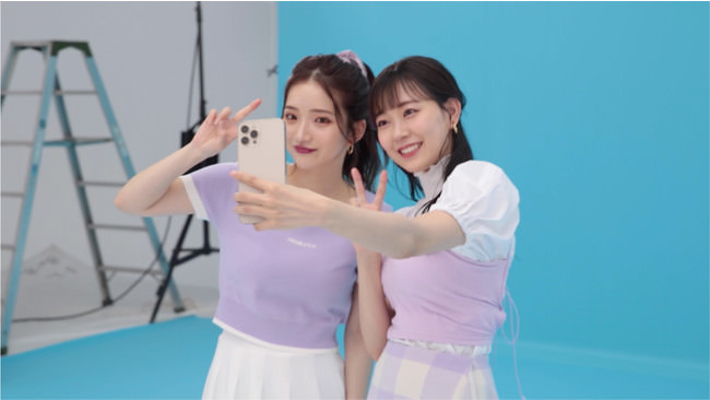 南:私たちの可愛らしい衣装です。二人で踊っている姿も沢山の方に見て欲しいです。渡辺さんとは初対面だったのですが、ユニットを組んでいるようですごく楽しく踊れました。リンクコーデで「#チャミスルムーブ」踊って頂くのも面白いかもしれません。