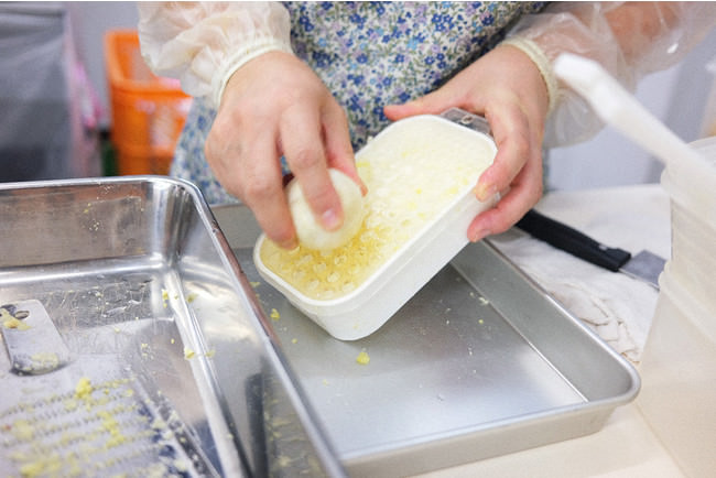 レモンピューレはすべて手作業で製造。飴の一部を手作業で製造することで、粒感を残した絶妙な塩加減を実現。飴一粒ひとつぶを、手塩に掛けてつくりあげました。