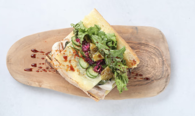 中華テイストの甘辛タレとスパイスが豚肉の旨味と絶妙に調和。隠し味のブルーチーズもたまらない美味しさ!京都にて「日本料理 研野」を経営、酒井研野さん(青森県黒石市出身)の贅沢サンドが、Wolt限定で登場いたします!