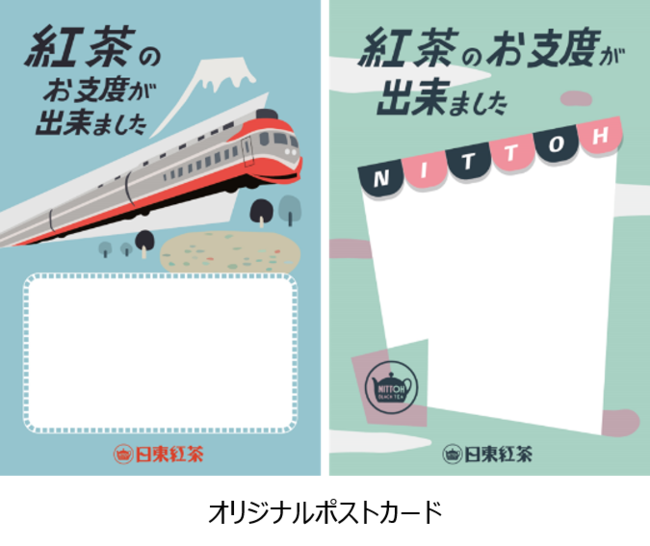 ミュージアムカフェ「ROMANCECAR MUSEUM CLUBHOUSE」において、かつて多くのお客さまに愛された看板メニュー「クールケーキ」を現代風にアレンジした「日東紅茶とクールケーキのセット」をご注文いただいたお客さまに、「走る喫茶室」をイメージしたオリジナルポストカードをプレゼント(先着50名様)します。