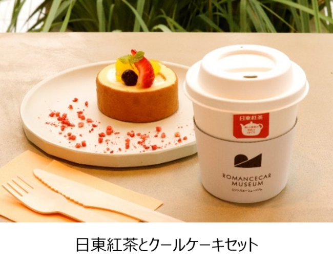 またイベント期間中は、ミュージアムカフェ「ROMANCECAR MUSEUM CLUBHOUSE」において、「走る喫茶室」の看板メニューを現代風に再現した「日東紅茶とクールケーキのセット」をご注文いただいたお客さまのうち先着50名さまに、「走る喫茶室」をモチーフにしたオリジナルポストカードをプレゼントするほか、ロマンスカーミュージアム館内で「走る喫茶室」の歴史を解説するオリジナルリーフレットもご用意しております。