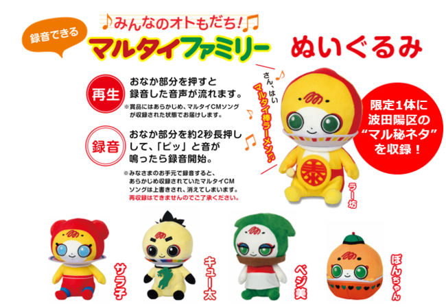 【A賞】録音できる!マルタイファミリーぬいぐるみ(1体のみ) 50名様