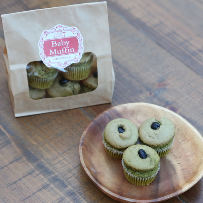 ふんわりほろ苦い抹茶とやさしい甘味の黒豆が特徴のマフィンです。