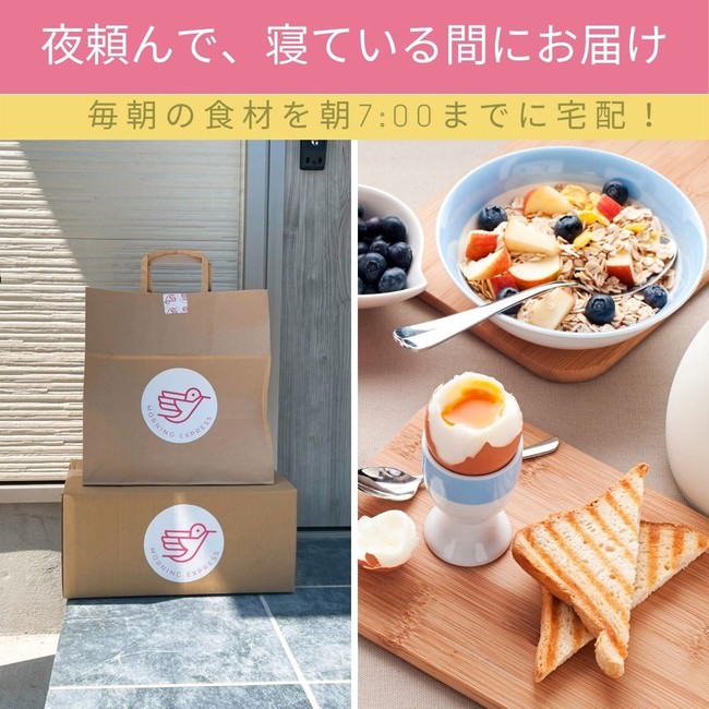 モーニング・エキスプレスは、生鮮食品を「寝ている間にお届け」するサービスです。夜22:00までの注文を、翌朝7:00までに置き配でお届けします。注文は完全オンラインで、早朝のルート宅配方式を採用することで、宅配コストを低減しています。