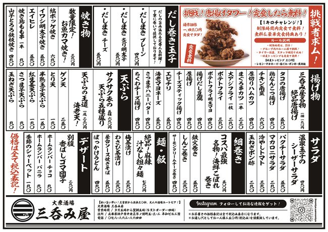 - 365日”安い・うまい・早い”の三拍子揃った庶民派居酒屋「大衆酒場 三呑み屋 三宮店」