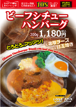 株式会社ペッパーフードサービス(本社/東京都墨田区・代表取締役社長CEO/一瀬邦夫)は、2021年11月1日(月)~11月30日(火)まで、国産牛フェアの第2弾を【いきなり!ステーキ】全店で開催致します。また、2021年11月1日(月)~12月12日(日)まで、【いきなり!ステーキ】フードコート・レストランコート店・ロードサイド店にて、大好評頂いた【ビーフシチューハンバーグ】が期間限定で再登場致します。