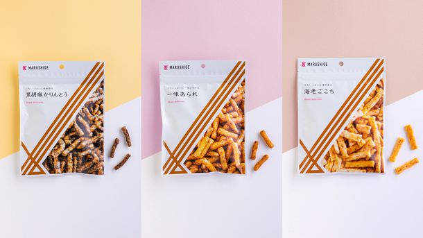 名称 : (1)黒胡麻かりんとう (2)一味あられ (3)海老ごこち