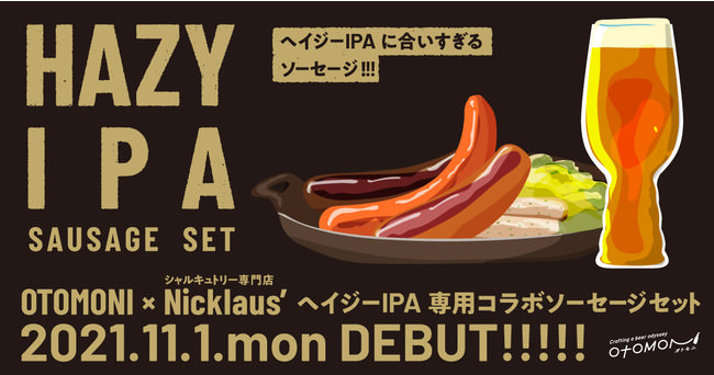 クラフトビールのサブスク「Otomoni(オトモニ)」を運営するmeuron株式会社(本社:東京都豊島区 代表取締役:金澤俊昌)は、クラフトビール専用フード開発プロジェクトを開始。第一弾はミートスライサーのトップメーカーである「なんつね」が運営する飲食店「Nicklaus’(ニクラウス)」とコラボして、昨今人気急上昇中の「ヘイジーIPA」専用ソーセージセットを考案。11/1(月)ソーセージの日にヘイジーIPA4種と「ヘイジーIPA」と合いすぎるソーセージをセットにした「オトモニヘイジーIPAソーセージセット」を販売開始!