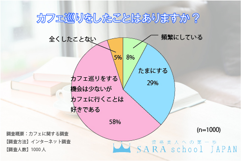 カフェ巡りを全くしたことがない、という人はわずか全体の約5%となりました。