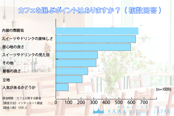 また「内装の雰囲気を重視する」という人と同様に「スイーツやドリンクの美味しさを重視する」と回答した人も多くいました。