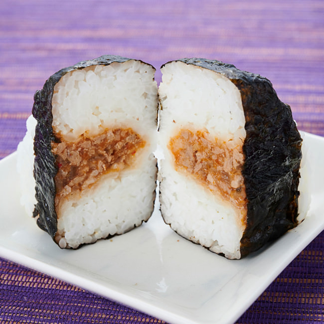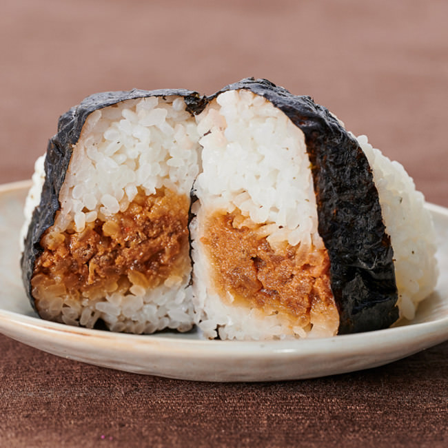 長熟会津みそに国産豚肉を加えた濃厚な味わいのおかず味噌が入ったおにぎりです。