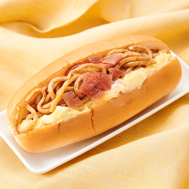 日本三大焼きそばの一つで、秋田県のB級グルメ「横手やきそば」をイメージした焼きそばをサンドしています。