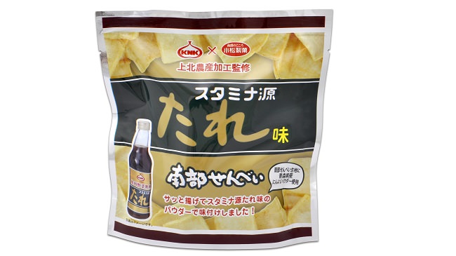 南部せんべいをサッと揚げて、スタミナ源(げん)たれ味のパウダーで味付けしました。