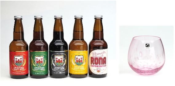 夕陽の月夜野ピルスナー、水と緑のエール、ホタルの里の黒ビール、ロマンの里のヴァイツェン、Princess March RONA 各330ml瓶1本ずつ