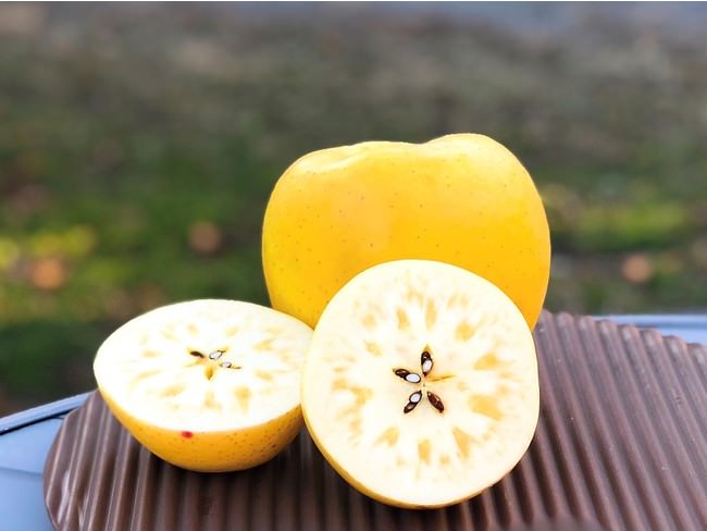 芳醇な香りと実の半分を占める蜜が特徴の黄色いりんご「ぐんま名月」。生産量が限られており、一般流通にはほとんど出回らずに贈答用として用いられることが多く、その希少性から“幻の黄色いりんご”ともいわれることがあります。