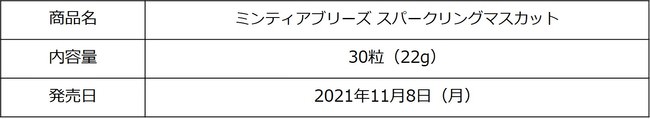 アサヒグループ食品株式会社(本社 東京、社長 川原浩)は、「ミンティアブリーズ」シリーズから、本格的なマスカットのおいしさと、心地よい清涼感が両立した味わいが楽しめる『ミンティアブリーズ スパークリングマスカット』を11月8日より全国で新発売します。