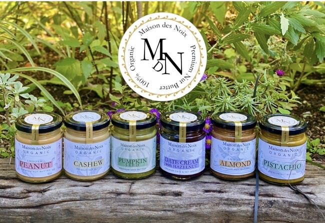 株式会社メイベルジャパン (以下「メイベル」)が展開するメゾンデノワのナッツバターはブルガリアの契約工房で製造、全ての製品がEUオーガニック認証取得。日本の有機JAS認証も取得しています。原材料は主にヨーロッパ各地からの厳選されたオーガニック・ナッツを使用。砂糖や油脂は不使用、乳化剤、保存料など一切無添加で、素材そのままの風味と栄養素を大事にした、贅沢な作りのナッツバターの数々です。