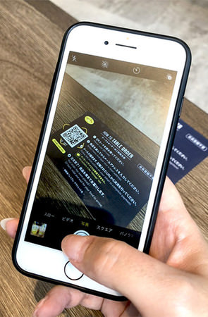 テーブルに備え付けのQRコードをお客様のスマートフォンで読み取ります。