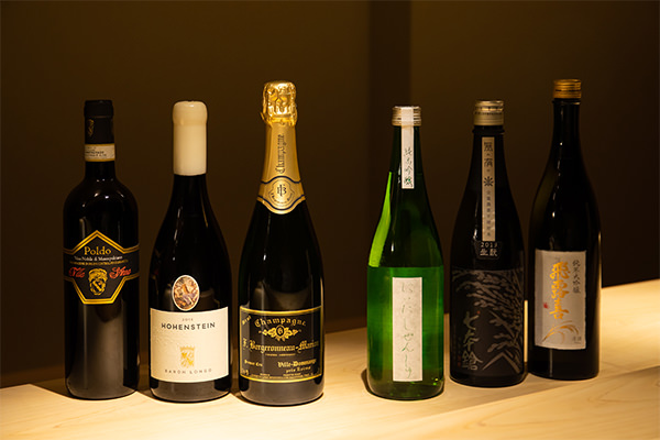 ワイン、日本酒など、季節に応じて、おすすめの銘柄を揃えております。