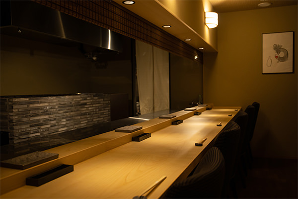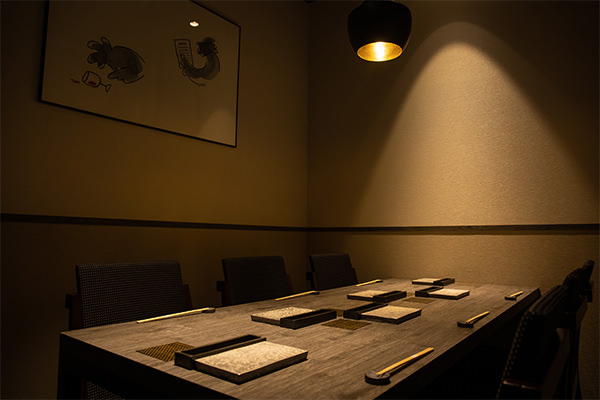 眼前にて最良の温度と加減で焼きあげられたベストな状態の串をダイレクトに楽しんでいただけます。他の2つの空間では通常味わうことができない(提供できない)地鶏2種の数量限定希少部位を味わい尽くしていただけるなど、焼き師との会話の中でお客様のわがままにも最大限応じることが可能です。