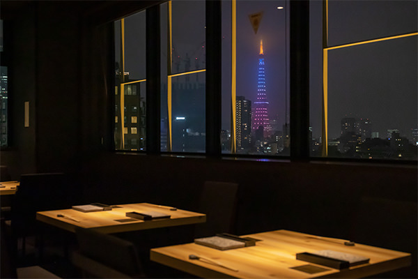 6席のみのプラベート感溢れるカウンター席、東京タワーの夜景が楽しめるテーブル席、様々なシチュエーションに利用可能な3つの個室。用途に合わせてそれぞれ異なる空間にて美しい日本の四季を感じていただける店内となっております。