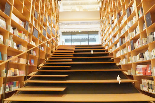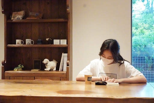 一階の正面入口から入り、天井まで伸びた本棚が両側にある階段を下ると、「橙子猫 – Orange Cat -」のカフェスペースが右奥に広がります。カフェのカウンターの方へ進んでいくと、優しい雰囲気を与える木々と深いコクのあるコーヒーの香りを感じられ、まるで村上作品の中に入り込んでいくような体験ができます。