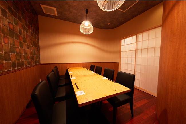 完全個室有◎店内奥には10名様までご利用いただける完全個室を2つ完備。周りのお客様を気にすることなく、ゆったりとしたひと時をお楽しみいただけます。