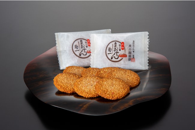 株式会社昭宝製菓(本社:石川県加賀市、代表取締役社長:竹内裕二)は、金沢グルメの代表格「金沢おでん」の看板メニューである香箱ガニの「カニ面」を、日本で初めてお煎餅にした、『金沢おでん「菊一」監修 カニ面煎餅』 を2021年12月上旬(予定)より石川県内で発売いたします。