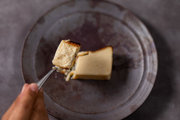 外側はこんがり焼いて少し苦みも出て味に深みが増し甘さを抑えた、チーズたっぷりの大人のバスクチーズケーキ。