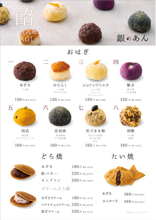 『銀のあん』は2007年に誕生し、職人が一つ一つ丁寧に焼き上げる “自家製あん” と上品な “薄皮” の組み合わせが自慢のたい焼専門店。“自家製あん” は、北海道産あずきを100%使用し、シンプルな食材と製法で丁寧に炊き上げることで、小豆本来の優しい甘さと素朴な味わいをお楽しみいただけます。今回は、これまでの経験やノウハウを活かし、“自家製あん”を中心とした「餡 -あん-」が主役の新コンセプトで、様々な商品ラインナップをご提案いたします。