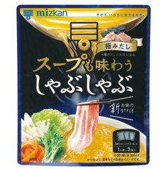 味が付いたスープの中に豚肉をくぐらせ、スープと一緒に楽しむ、新スタイルのしゃぶしゃぶ専用スープです。お肉をしゃぶしゃぶするワクワク感と、おだしの効いたスープを飲むほっこり感を、一緒に楽しむことができます。かつお、さば、むろあじ、昆布のだしをバランスよくブレンドした、芳醇な旨みが特徴です。1人前使い切りの小袋3袋入りです。