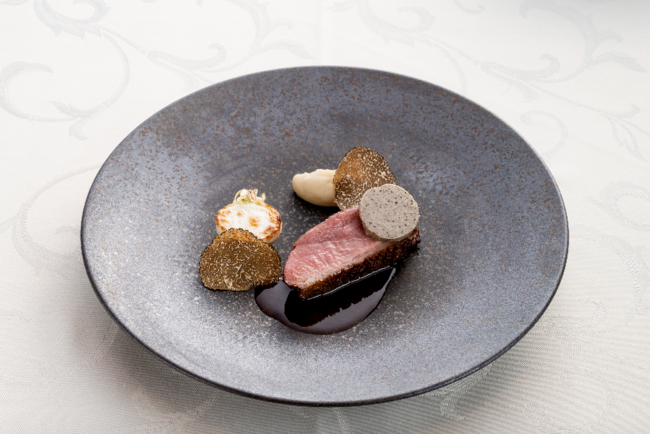 肉料理:フランス産 鴨胸肉のローストトリュフバターと赤ワインソース