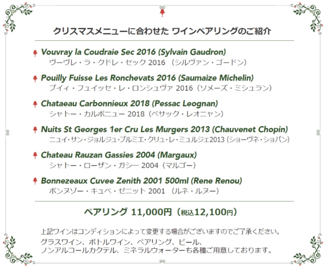 - クリスマスメニューに合わせた ワインペアリングのご紹介