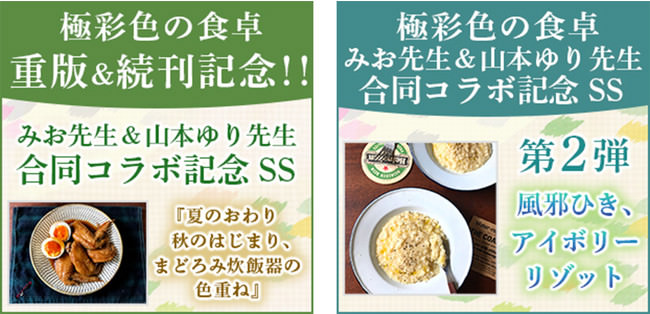 山本ゆり先生の絶品レシピと一緒に、『極彩色の食卓』みお先生が書き下ろした、