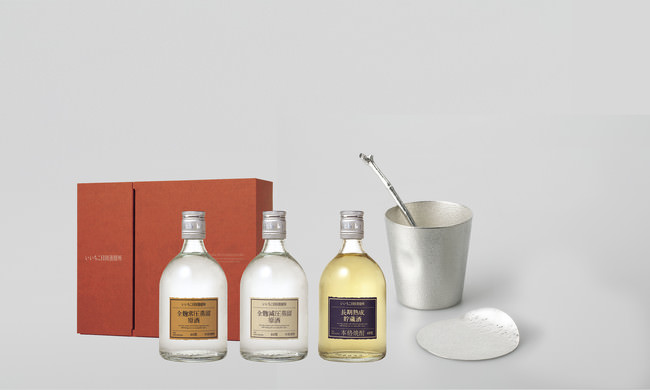 錫(すず)100%で作られた人気のNAJIMIタンブラー、マドラー、すずまるの3点セットと、大分県にある「いいちこ日田蒸留所」限定販売の焼酎「いいちこ原酒」3本セットを特別に組み合わせました。そのままご試飲いただくことはもちろん、ご自身好みのブレンドもお楽しみいただけます。〈全麹常圧蒸留原酒(44度)、全麴減圧蒸留原酒(44度)、長期熟成貯蔵酒(40度)〉