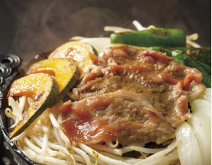 北海道で親しまれている、通常ラム肉を使用するジンギスカンを豚肉でその味を再現しました。臭みがないため食べやすく、野菜と一緒に焼くとおいしさが更に引き立ちます。