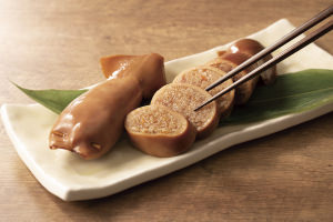 1品目はもっちりやわらかな食感の「特製ジャンボいかめし」。食べ応えのあるジャンボサイズをご用意し、いかの旨みがたっぷりしみ込んだ北海道産のもち米を使用しています。