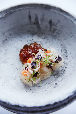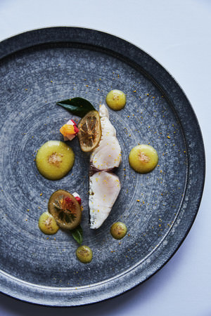 フィンガーライムの清涼感も程よいアクセント。鰆の旨みを口当たりのまろやかで香り高い柑橘ソースが包み込んだ愛媛県の陸と海の恵が出会った逸品です。