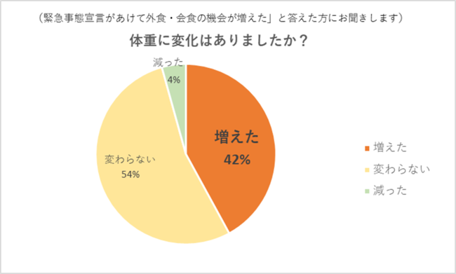 - 緊急事態宣言明け、会食や外食が増えて体重が増えた人が4割?!