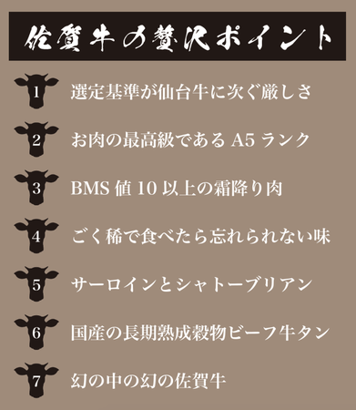 ぜひこの機会に、贅沢な「幻の中の幻の佐賀牛」をお召し上がりください。