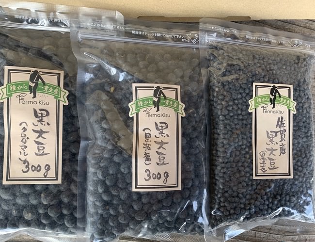 クロダマルは、豆菓子やきな粉などにも加工される人気品種です。黒招福は、クロダマルよりも小ぶりの粒ではありますが、しっかりとした食感です。黒千石は、通常の大豆の半分くらいの粒の大きさで、中は緑がかっているのが特徴です。味や食感の違いをお楽しみください。